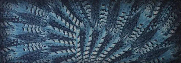 Highfield shawl van 100% Merino wol met dessin “Veren”, kleur Navy/Jeans size 70cm x 180cm