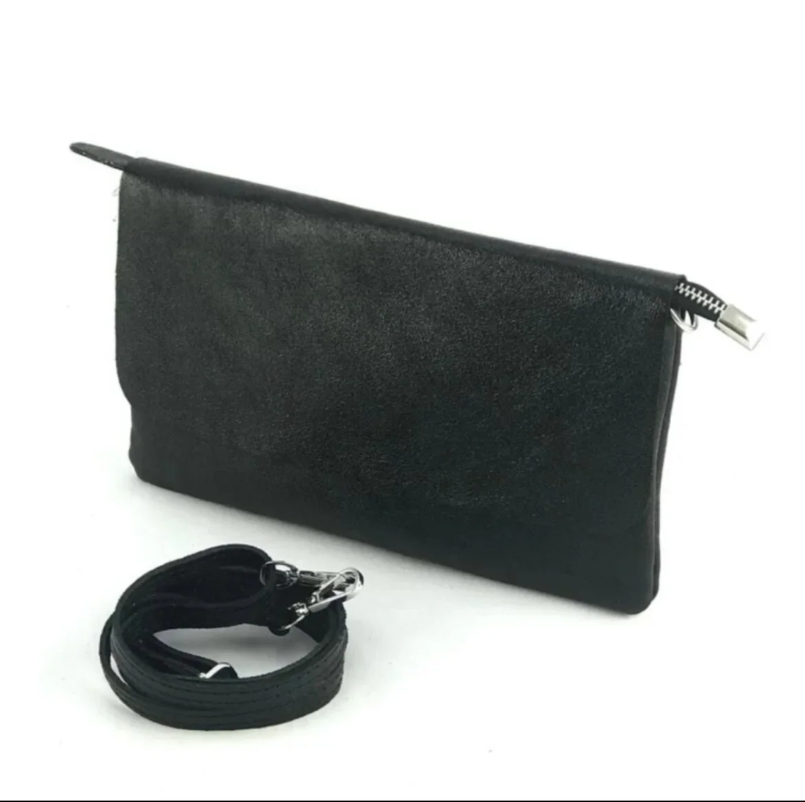 CLUTCH/ENVELOPE TAS Kleur Zwart/elegante glitter. Materiaal: Kalfsleder made in Italy Maat: 25x15x1cm
