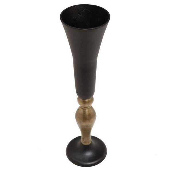 Deze mooie PTMD vaas met abstracte moderne vormen is zwart met een brass kleurige onderkant.